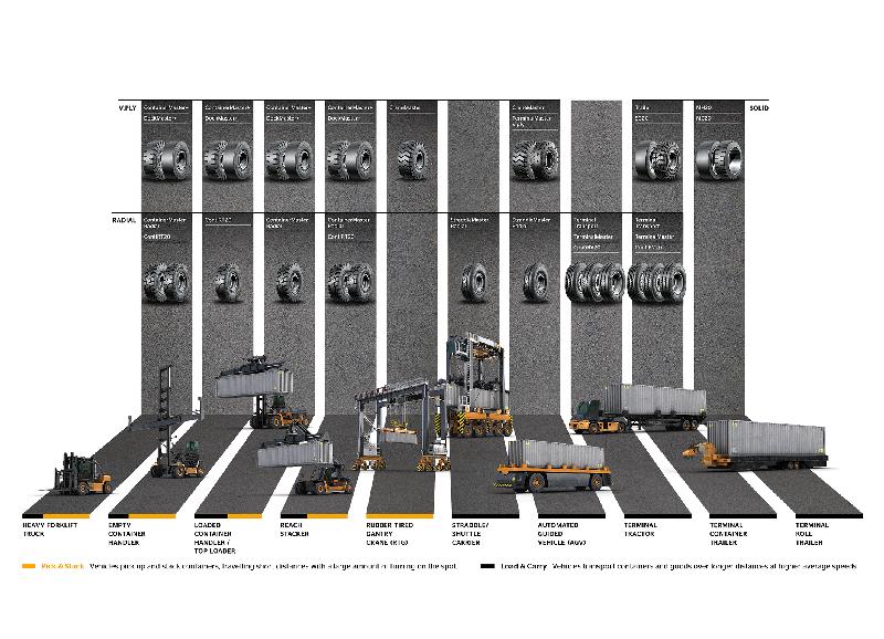 Con el lanzamiento de la cartera de neumáticos radiales 2019, Continental ha completado su gama de productos para aplicaciones portuarias. También ha adquirido una amplia experiencia en el mercado en los últimos años. Estos neumáticos han sido especialmente diseñados para cargas y cargas exigentes. llevar aplicaciones. Julian Alexander, gerente de línea de productos de Continental Commercial Specialty Tires para aplicaciones portuarias, dice: «Esta expansión de producto hace que Continental sea único en el sentido de que se pueden suministrar neumáticos radiales, diagonales y sólidos, lo que le permite equipar toda la flota En el puerto. Nuestro servicio técnico al cliente está en estrecho contacto con los gestores de flotas para garantizar que los neumáticos se adapten de forma óptima a las aplicaciones de los vehículos de la terminal. Ya sea para pick & apilar o cargar & llevar necesidades.”