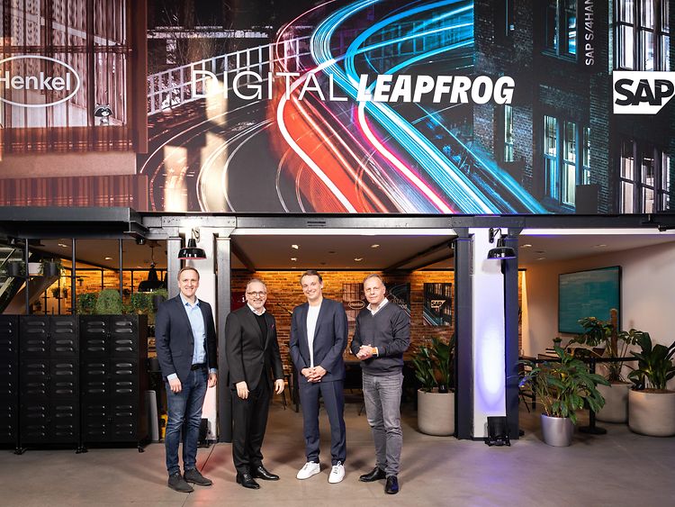 Desde la izquierda: Jürgen Müller (Chief Technology Officer SAP SE), Carsten Knobel (CEO Henkel), Christian Klein (CEO SAP SE) y Michael Nilles (Chief Digital and Information Officer Henkel) llevan la asociación estratégica entre SAP y Henkel al siguiente nivel para impulsar aún más el viaje de transformación digital de Henkel.