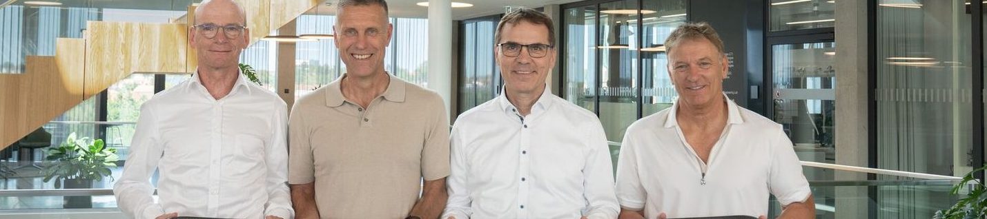 (From left to right) Prof. Dr. Tim Hosenfeldt (Head of Central Technologies, Schaeffler), Karlheinz Waibel (National Coach for Science, DSV), Uwe Wagner (Chief Technology Officer, Schaeffler), and Wolfgang Maier (Executive Board Member for Sports, DSV) are pleased about the strategic technology partnership. Photo: Schaeffler