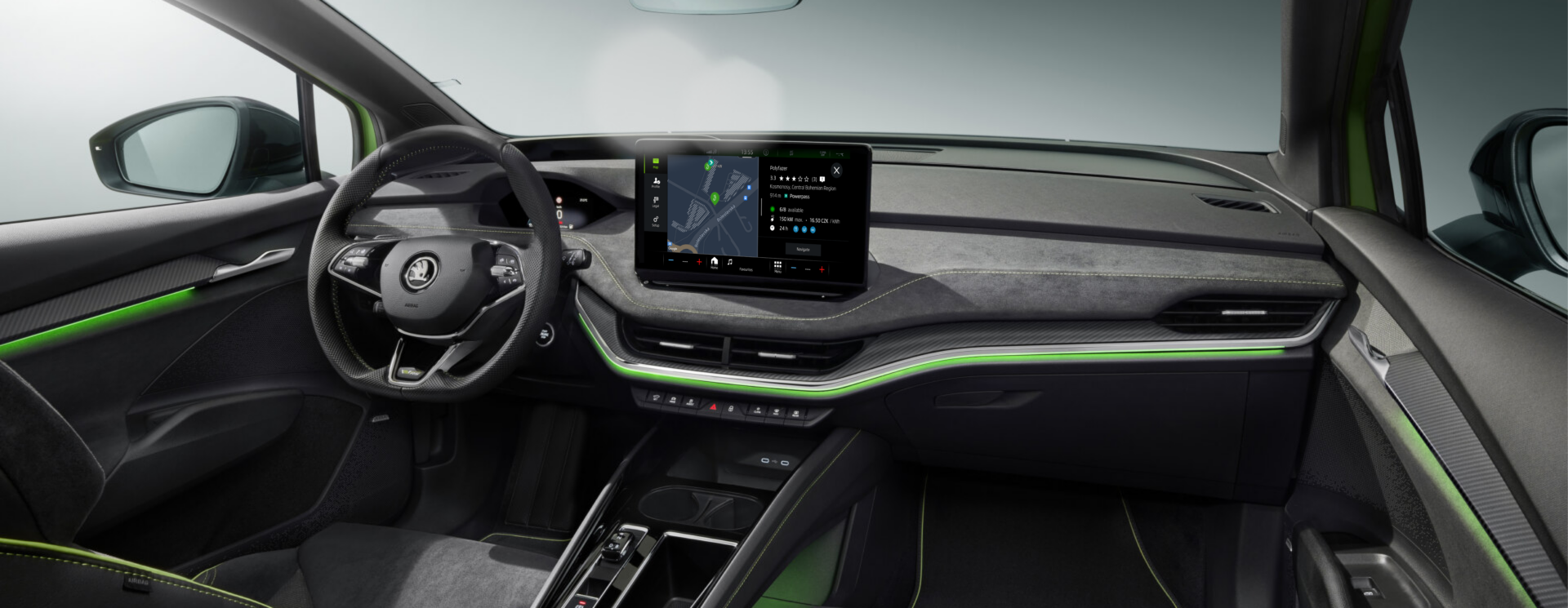 El Powerpass Map muestra los puntos de recarga en un mapa en la pantalla central, brindando información intuitiva y actualizada sobre los puntos públicos de recarga para autos eléctricos. El mapa muestra los puntos de carga disponibles dentro y fuera de la red Powerpass, que abarca más de 500 000 puntos de carga en toda Europa. Un símbolo especial en el mapa indica estaciones de carga dentro de la red Powerpass. Además, las búsquedas de puntos de recarga se pueden filtrar según las preferencias del conductor. Los usuarios pueden descargar la aplicación en el automóvil desde In-car Shop de forma gratuita, siempre que el vehículo esté ejecutando el software ME3.0. Los usuarios también pueden buscar y mostrar puntos de carga en las aplicaciones móviles MyŠkoda o Powerpass.
