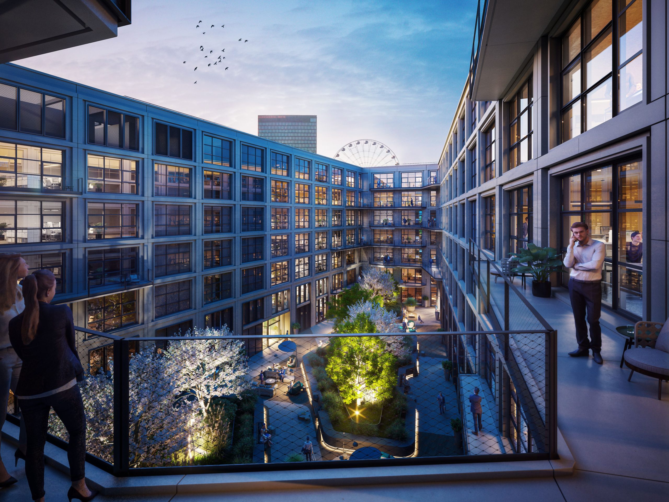 The giant Ferris wheel – a Munich landmark just north of the location – will be clearly visible from the building’s top-floor windows.